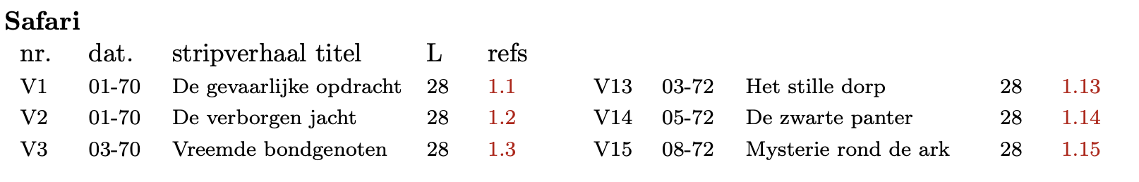 Als voorbeeld geven we de inhoud van stripboekenseries.txt