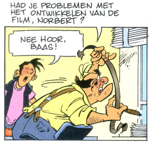 staat oorspronkelijk in Robbedoes en Spirou 3183 en is voor het stripboek hertekend. Het oorspronkelijke stripverhaal was om een of andere reden niet door Luc Mazel maar door Philippe Bercovici getekend. Voor het stripboek is dit stripverhaal klaarblijkelijk helemaal door Luc Mazel hertekend. Alle plaatjes zijn veranderd. Het eerste originele plaatje en de hertekening staan hieronder