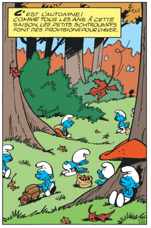 V1 De zwarte smurfenHet smurfverhaal V1a De zwarte smurfen verscheen voor het eerst in december 1959 in het Franse smurfblad Spirou 1107 en in het Vlaams/Nederlands stripblad Robbedoes 1107. Het was het eerste zogenaamde mini-boekje bij Spirou/Robbedoes. Het eerste plaatje is helemaal hersmurft. In het originele smurfverhaal zien we het smurfendorp met alle smurfen en in het hersmurfte smurfverhaal zien we een kaart waarin het smurfendorp gesitueerd is.