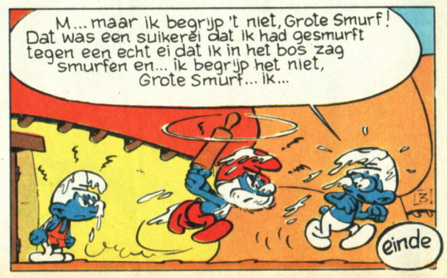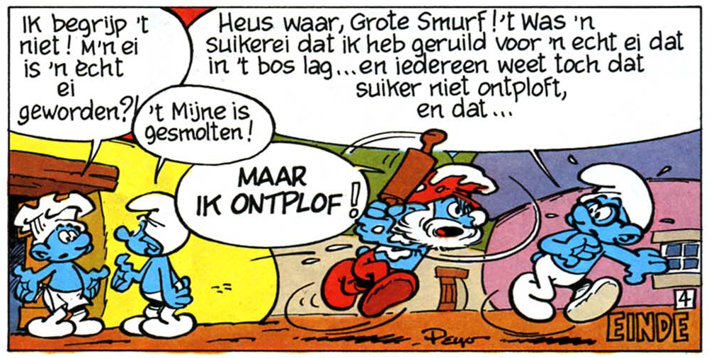 V4 De valse smurfHet smurfverhaal V4a De valse smurf verscheen voor het eerst in juni 1961 in het Franse smurfblad Spirou 1211. Naar ons weten is dit originele smurfverhaal nooit in het Nederlands verschenen. De hersmurfte versie is in juli 1967 gepubliceerd in Spirou en in Robbedoes nr. 1525 t/m 1530 om vervolgens in het smurfboek Het ei en de Smurfen in 1968.