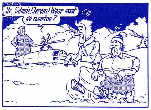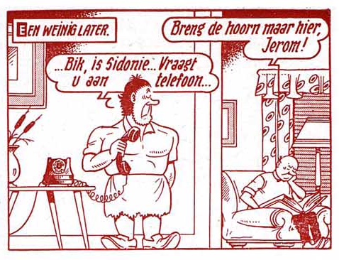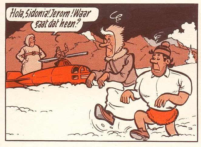 stond in de Standaard van 2 april 1956 t/m 8 augustus 1956. Het stripverhaal is in 1964 voor de gezamelijke tweekleurenreeks nr. 52 hertekend om Jerom het nieuwe uiterlijk te geven. Jerom krijgt in deze hertekening gelijk gewone kleren aan en geen dierenhuid. Er zijn verder weinig aanpassingen te vinden ook al is het haar van Sidonia wel in de nieuwe stijl gedaan.