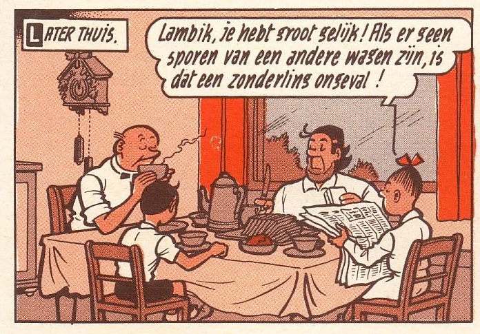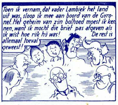 Het einde van het stripverhaal is nog wel opvallend. De laatste pagina in de de originele krantenuitgave eindigt op een halve pagina. In de meeste stripboeken is de laatste pagina geheel. Voor het stripboek is er dus een halve pagina bijgetekend terwijl bij latere verhalen soms juist een strook is weggelaten.