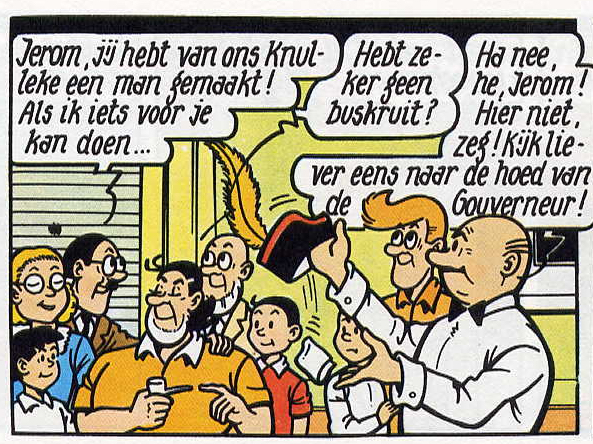 Het lijkt erop dat in deze hertekening alleen Jerom is vernieuwd en dat de overige figuren niet zijn aangepast.