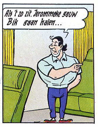 In het laatste plaatje van het stripverhaal V42a, P55.11 is in de originele versie het haar van Jerom al iets frivoler.