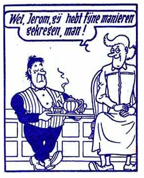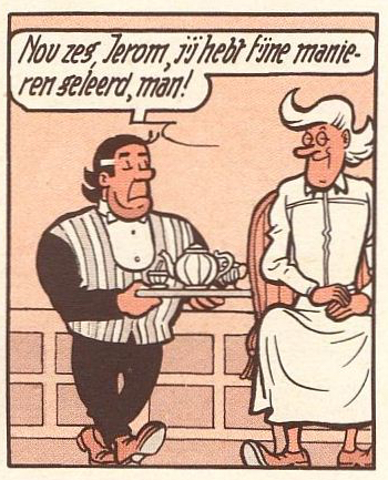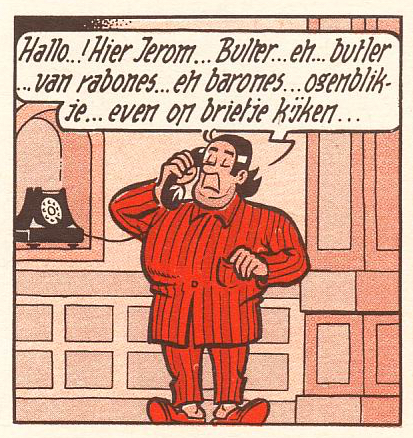 In de orginele versie krijgt Jerom als lakei ook al gewone kleren aan.
