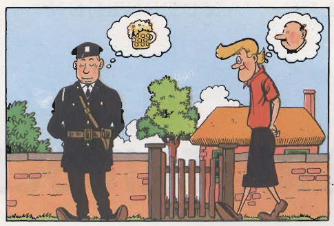 De onderscheidende plaatjes geven de versie van het stripverhaal aan. Alle andere aanpassingen in de tekeningen zullen we dan niet meer beschrijven omdat die volgen uit de onderscheidende plaatjes.