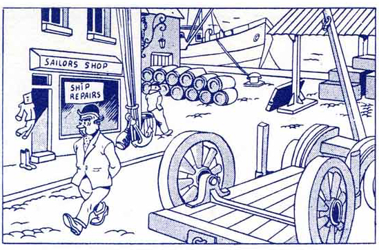 stond in de Nieuwe Standaard van 16 mei 1946 t/m 27 september 1946. Het stripverhaal is geheel hertekend voor het Vlaamse tweekleuren stripboek nr. 42 uit 1962 (plaatje uit de vierkleurendruk nr. 107).
