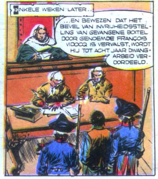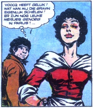 V16 De valse gravinHet stripverhaal V16 De valse gravin verscheen voor het eerst in Pep 1966-35. Voor het stripboek De avonturen van Vidocq uitgegeven door Oberon in 1977 is dit verhaal enigzins aangepast. De belangrijkste veranderingen gebeuren op de eerste helft van de eerste pagina. In het hertekende verhaal zijn plaatjes toegevoegd, weggelaten en er is een plaatje uitgebreid. Plaatje 2 in het originele verhaal wordt verkleind en plaatje 3 uit het hertekende verhaal wordt toegevoegd.