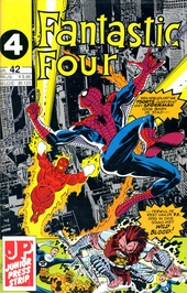 1993 Nr. 42 (05-93) (68p.) Een strijdlustige Toorts in gevecht met Spiderman hoog boven de stad...
