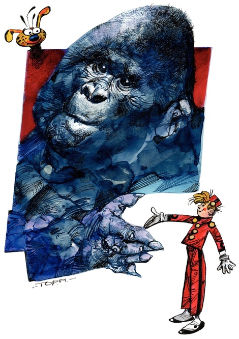 | Eerste regel origineel: | [Spirou donne un coup de main au singe] |